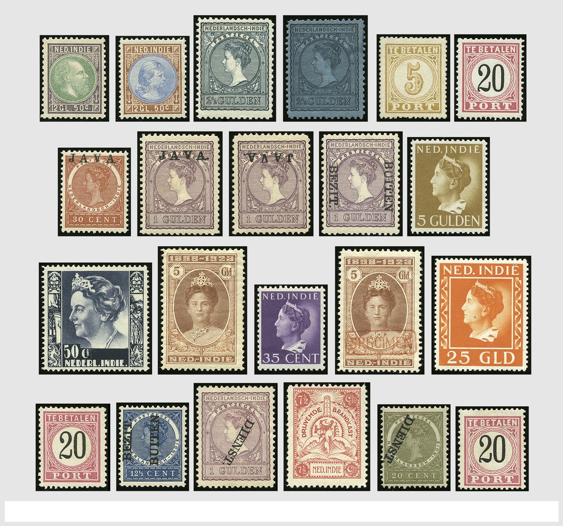 NEDERLANDS INDIË 1864-1962, op 'n enkel zegel na geheel ongebruikte resp. postfrisse collectie. Veel goede nrs. o.a. 5, 16, 23/30, 58/61, 79a, 79f, 97f, 160/166, "Stockholm"-serie op een zegel na (30 cent Port) cpl. en merendeels postfris, 260, 274/289, Port 1/4, Port emissie 1882 op tandingen en typen. Dienst 1/27, 9f/19af, 21f, 26f, Brandkast 1/7 en New Guinea etc. Een prachtkoop!