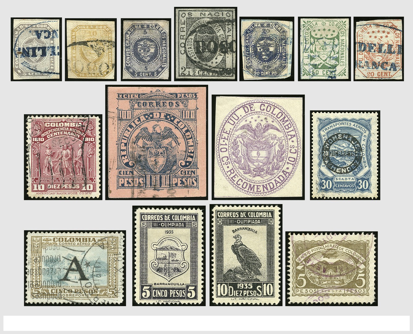 COLOMBIA 1859-1971, o/*/** mooie, uitgebreide verzameling merendeels gestempeld met variëteiten zoals, ongetand, stempels, en een leuke afdeling "Back of the Book" met veel provinciale en lokale uitgiften waarbij aardig "Scadta". Flinke cat. waarde!