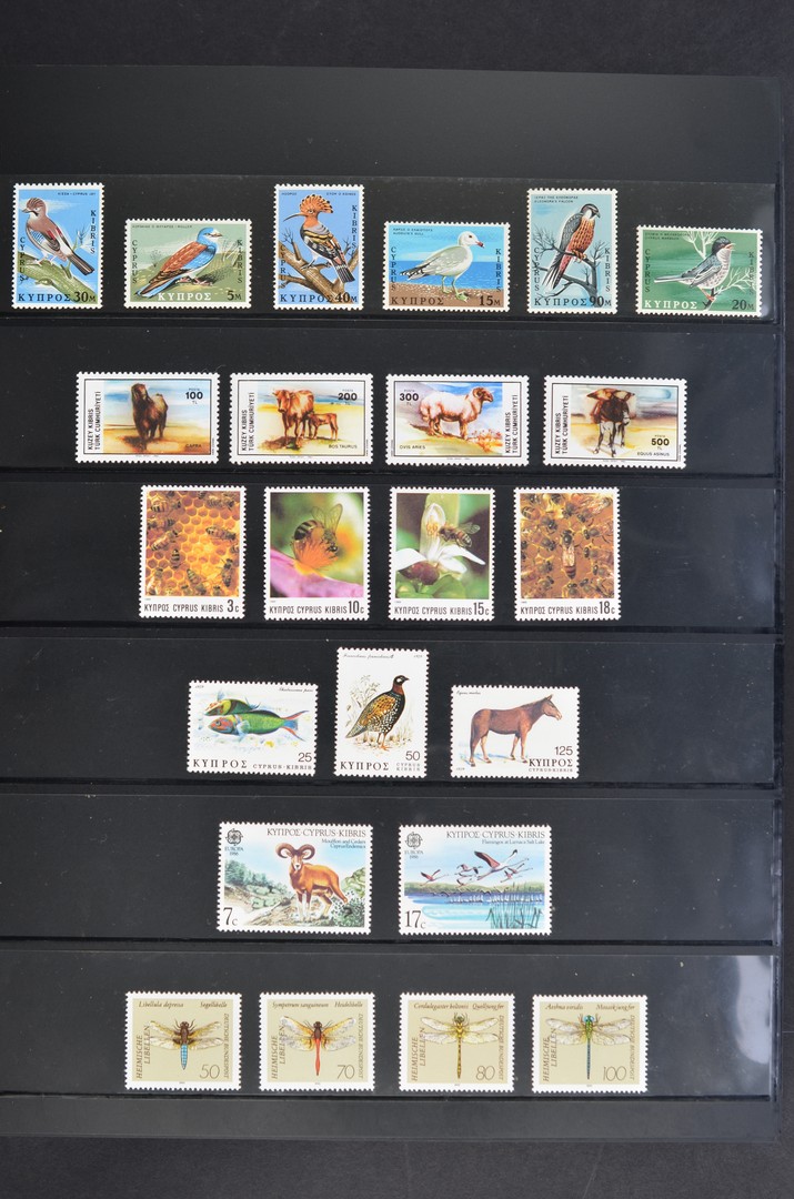 MOTIEF, Vogels, Vissen en uitgebreid Honden, meest postfrisse verz. series en blokken in 4 dikke Kosmos albums. Prachtkoop met betere uitgiften en hoge waarde!