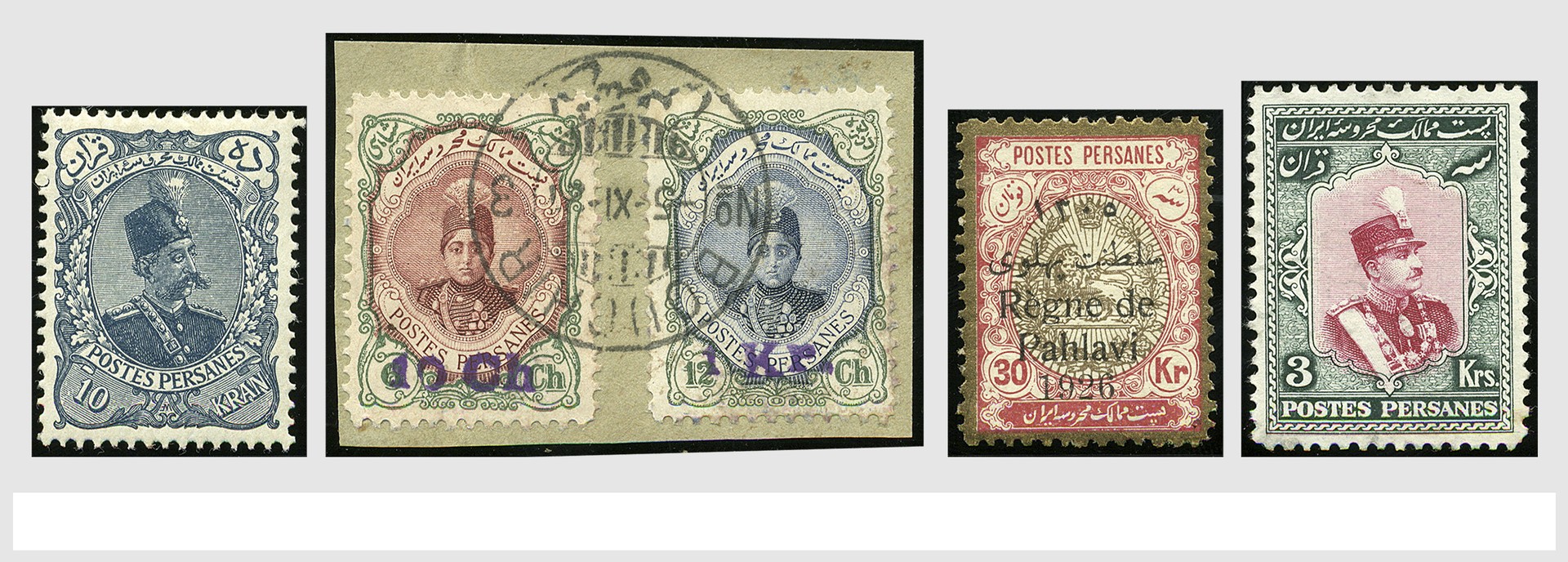 PERZIË en IRAN, o/* verzameling met doubletten in dik insteekboek met veel goede nrs. en series. Hoge cat. waarde!