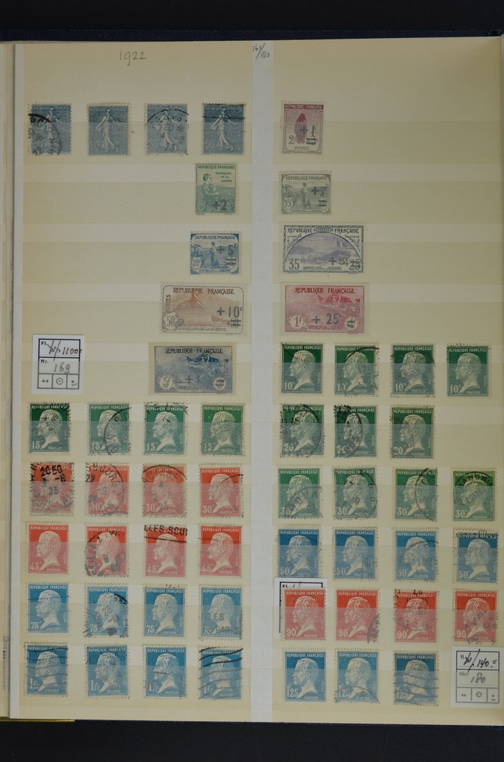 FRANKRIJK, o/* voorraad meest vooroorlogs in 3 insteekboeken met div. aardige nrs., ook leuk voor stempels. Hoge cat.wrd!