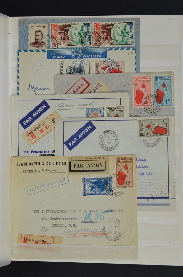 FRANSE KOLONIËN, MADAGASCAR, o/*/** voorraad met veel ouder materiaal (stempels) en een aantal leuke brieven en kaarten