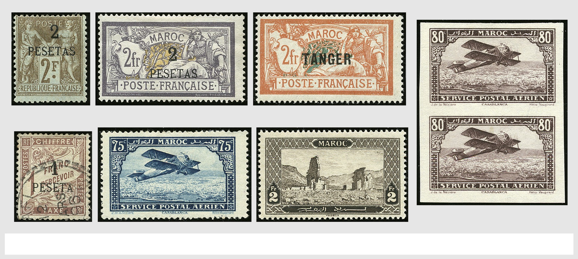 FRANSE KOLONIËN, MAROKKO 1891-1982, o/*/** goed gevulde verzameling met variëteiten zoals ongetand, en veel beter materiaal, Luchtpost, Port en 40 leuke poststukken in Yvert album