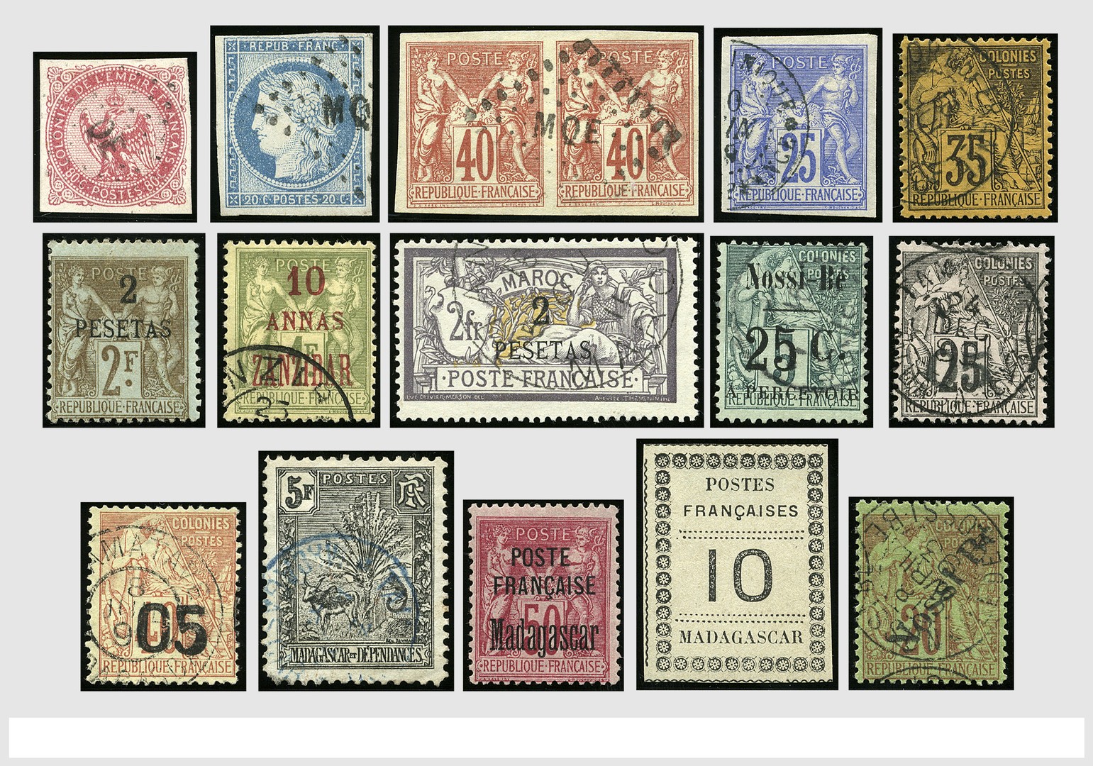 FRANSE KOLONIËN, o/*/** verzameling in 2 insteekboeken waarin o.a. leuk Martinique en Madagascar, veel betere zegels w.o. met keur