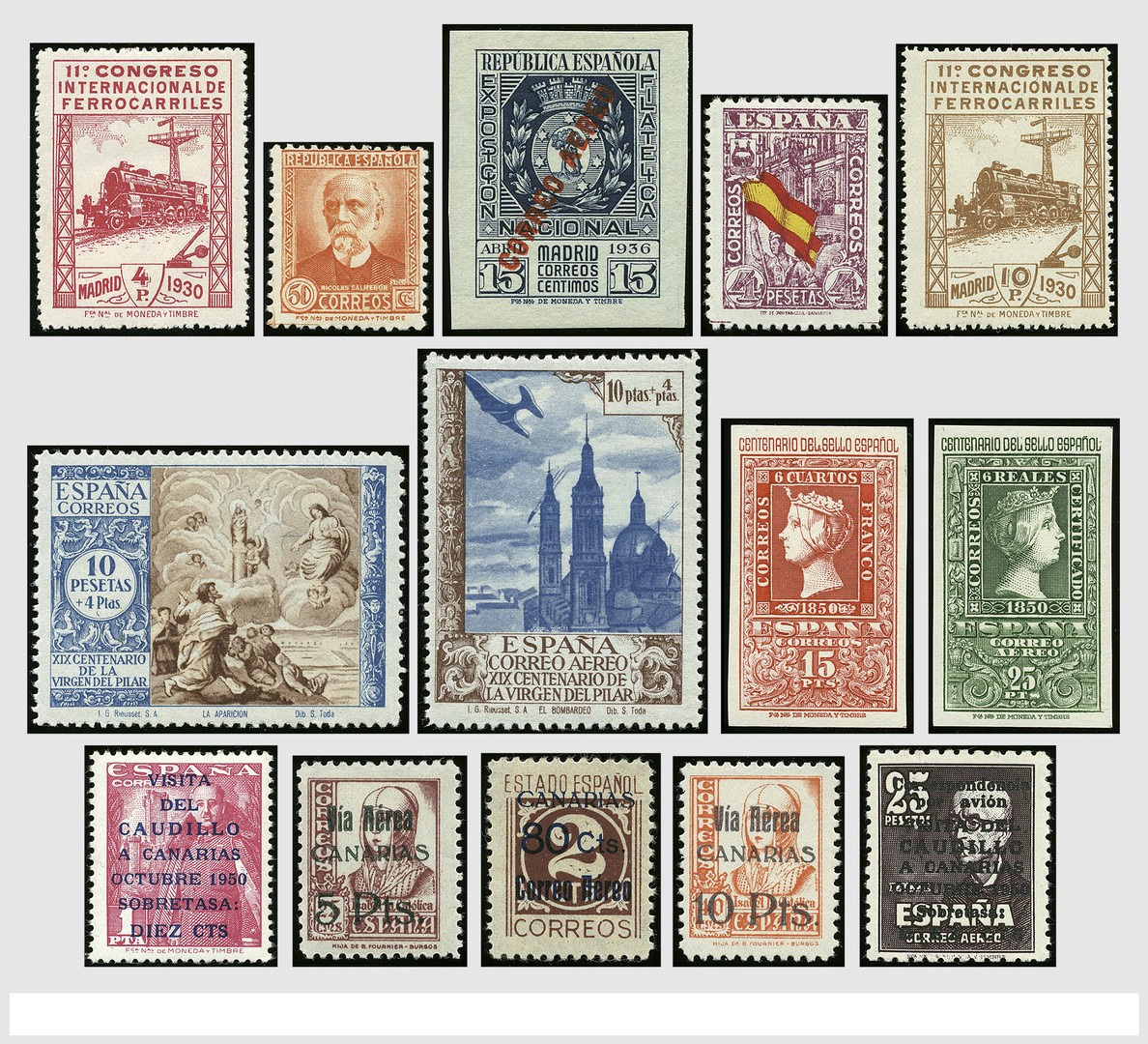SPANJE 1850-1986, o/*/** Mooie collectie in 3 Leuchtturm banden met vele betere nrs. en series w.o., 9, 11, 13, 15, 20, 58, 220/229, 241/242, 298/321, 351/374, 408/440, 444/463, 618/625, 679/682, 711, 713, 737/745, 859/883, 975/982, 985/987 etc. Tevens een leuke afdeling "Back of the Book" met o.a. Burgos, Cadiz, Canarische Eilanden, Zwartdrukken, etc. Het geheel opgefleurd met talloze brieven w.o. veel met censuur. Een prachtkoop!