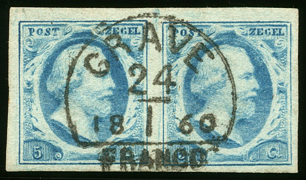 GRAVE C (EY.250) op 5 cent nr. 1l-Pl.IV-41/42. Breed gerand prachtpaar met superbe afst.