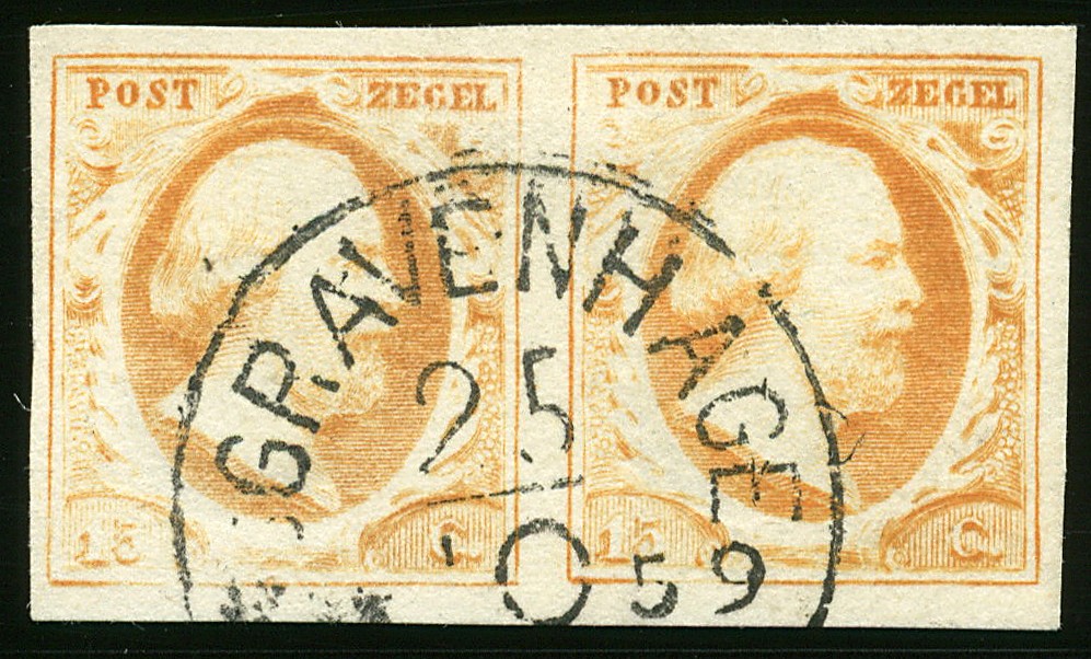 ´sGRAVENHAGE C groot (EY.125) op 15 cent nr. 3d, pos. 93/94. Prachtpaar met bijzonder mooie, centrale afst.