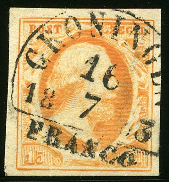 GRONINGEN B klein (EY.100) op 15 cent nr. 3b, pos. 30. Prachtex. met nagenoeg complete afst.