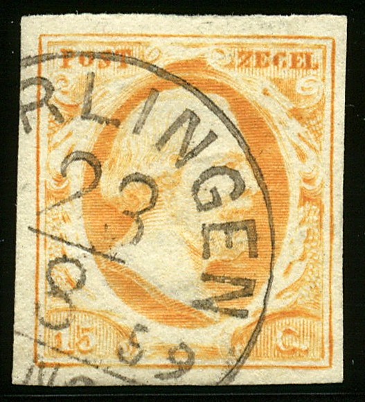 HARLINGEN C (EY.600) op 15 cent nr. 3c, pos. 27. Prachtex. met grootste deel afst.