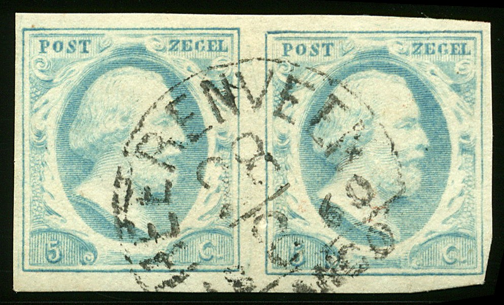 HEERENVEEN C klein (EY.100) op 5 cent nr. 1n-Pl.IV-9/10. Vrijwel prachtpaar met centrale afst.
