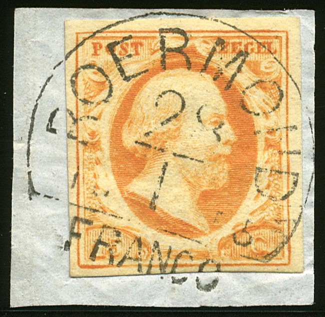 ROERMOND C groot (EY.200) op 15 cent nr. 3b. Prachtex. op briefstukje met mooie, scherpe afst.