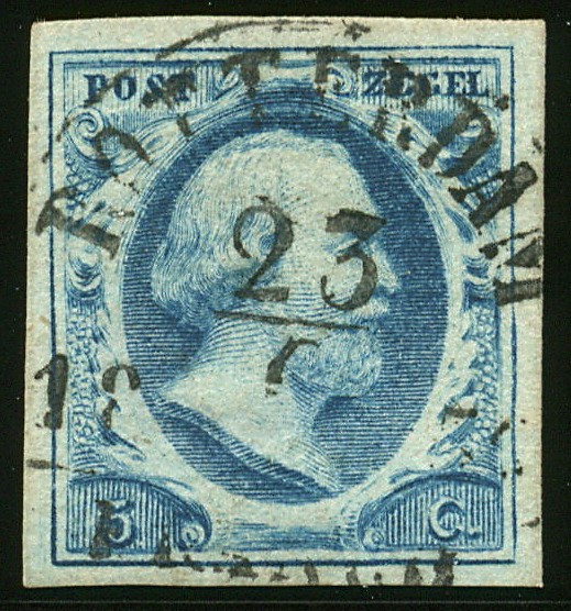 ROTTERDAM B klein (EY.50) op 5 cent nr. 1b-Pl.I-94. Prachtex. met voor dit stempel een mooie, volledige afdruk