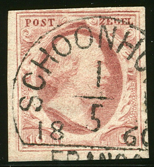 SCHOONHOVEN C (EY.400) op 10 cent. Linksboven wat smal, overigens prima gerande zegel met scherpe, bijna volledige afst.