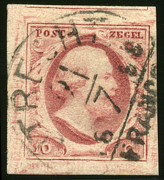 UTRECHT C met FRANCO klein (EY.50) op 10 cent nr. 2g-Pl.IV-81. Zeer breed gerande prachtzegel met volledige afst.