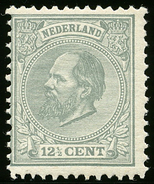 22H, 12½ cent grijs, postfris pr.ex. met cert. Bakker (2002) € 500