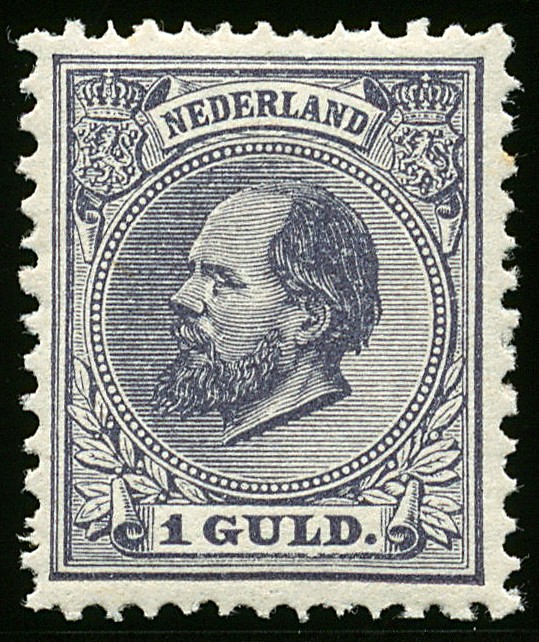 28, 1 Gulden grijsviolet, postfris prachtex. met cert. NVPH (2017) € 2500