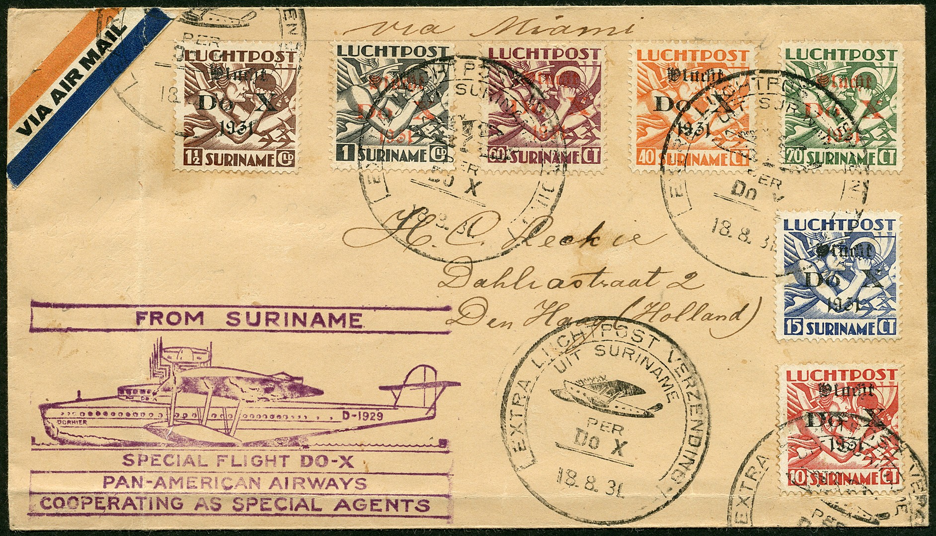 Luchtpost 8f/14f, Do.X zonder punt, de complete serie op speciale cover 18.8.31 naar Den Haag € 1100 ++