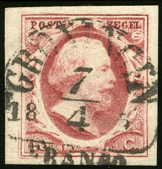 2f-Pl.III-16 op geribd papier. Zeer breed gerande luxe zegel, afgest. Groningen B. Zeldzaam in deze kwaliteit. Attest ´Dr. Louis, 1986´