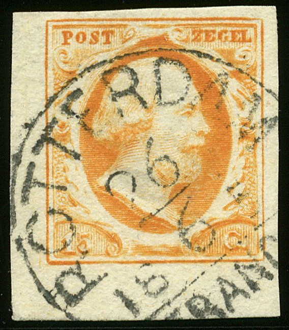 3b, pos. 21. Breed gerand prachtig hoekstuk met volledig Rotterdam C groot. Hoekstukken van de 15 cent zijn zeer schaars! Een plaatje!