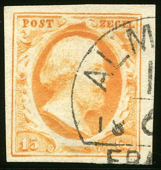 ALMELO C groot (EY.R) op 15 cent nr. 3c, pos. 62. Mooi tot breed gerande prachtzegel met groot deel van dit op deze waarde zeldzame stempel. Attest 'Vleeming, 2019'