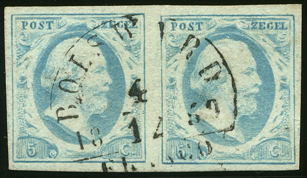 BOLSWARD B (EY.100) op 5 cent nr. 1k-Pl.III-87/88. Prachtpaar met lichte, centrale afst.