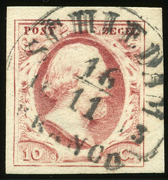SCHIEDAM B (EY.75) op 10 cent nr. 2b-Pl.I-40. Breed gerand pracht randstuk met volledige afst.