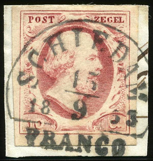 SCHIEDAM B (EY.75) op 10 cent. Breed gerand prachtex. op briefstukje met volledige afst.
