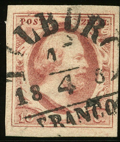 TILBURG B (EY.100) op 10 cent nr. 2h-Pl.V-40. Breed gerand prachtex. met ideale afst.