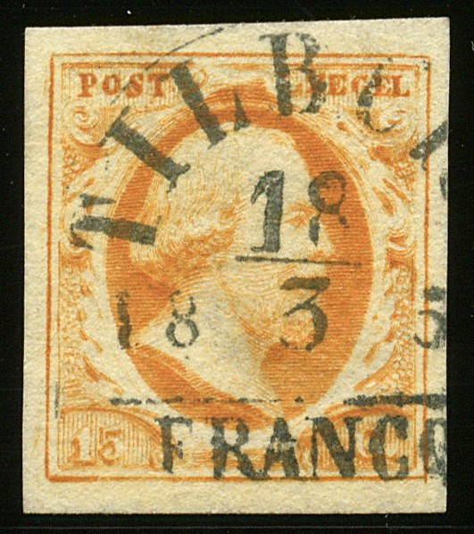 TILBURG B (EY.500) op 15 cent nr. 3a, pos. 4. Breed gerande prachtzegel met vrijwel volledige afst. Zeldzaam in deze kwaliteit! Ex Dreikurs