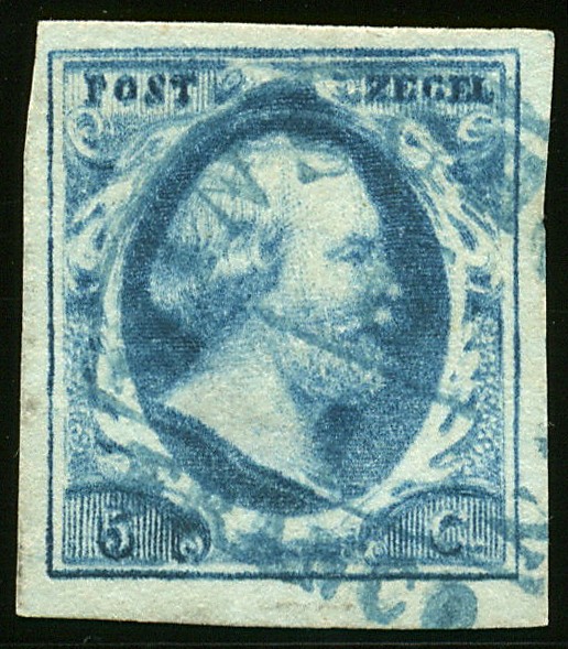 WINSCHOTEN A in blauw (EY.175) op 5 cent (Pl.I-31€ Kissprint?). Breed gerand prachtex. met vrijwel volledige afst.