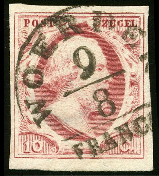 WOERDEN A (EY.175) op 10 cent nr. 2a op dun papier. Prachtex. met complete afst.