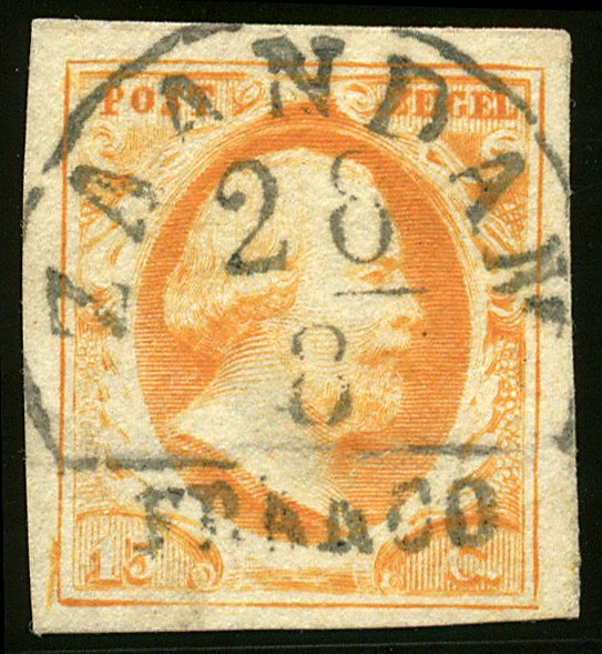ZAANDAM A (EY.250) op 15 cent nr. 3b, pos. 59. Prachtex. met ideale afst. Ex John de Leeuw