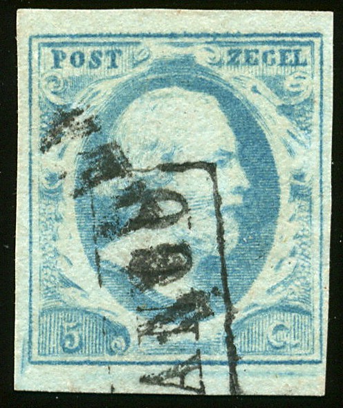 DALEN (EY.RR) op 5 cent nr. 1n-Pl.IV-61. rechtsonder iets smal, overigens prachtex. met volledige afdruk van dit zeer zeldzame stempel