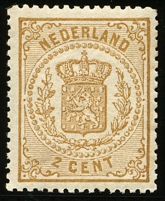 17A, 2 cent bruingeel, Lt. 14 kl.g., postfris prachtex. met originele, iets gelige gom en Befund Vleeming (2018) € 375