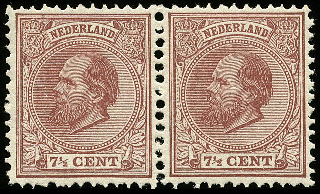 20, 7½ ct. chocoladebruin, postfris prachtpaar € 750