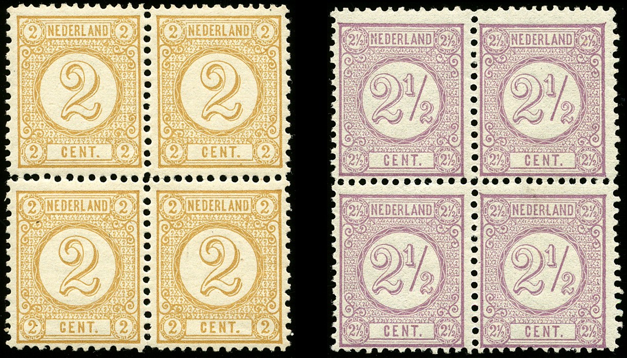 30/33, Cijfer 1½ t/m 2½ cent, in postfrisse prachtblokken van vier € 6200