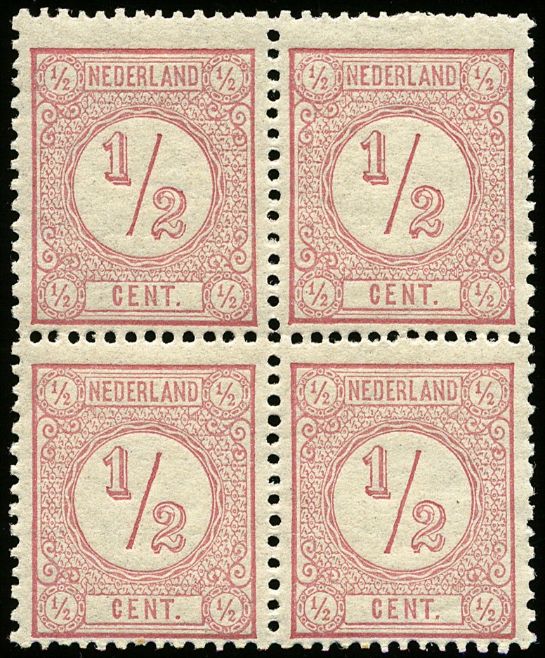 30FI, ½ ct. roze, type I Kt. 12½ gr.g., in postfris blok van vier € 320