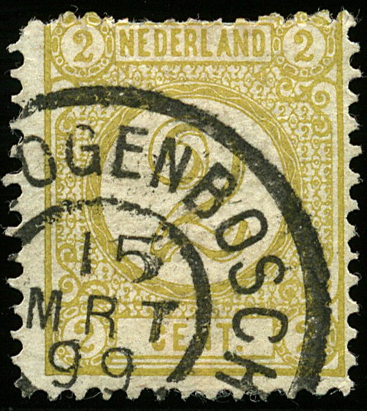 32ap, 2 cent olijfgeel in Bossche tanding, afgest. ´sHertogenbosch 15-3-1899. Zeldzaam! Cert. ´NVPH, 1994´. € 1600