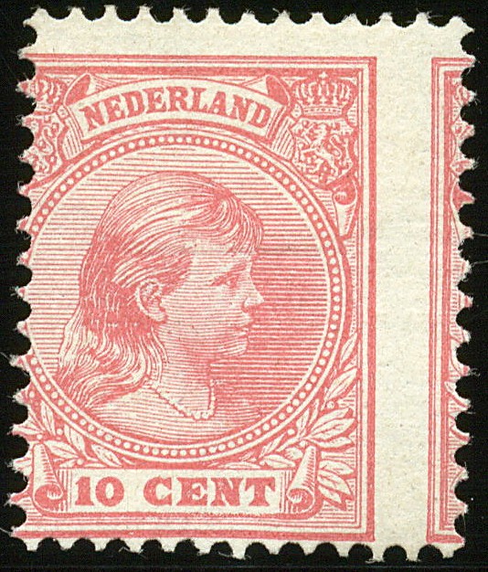 37, 10 cent roze met variëteit ´Sterk verschoven verticale perforatie´, ongebruikt prachtex.