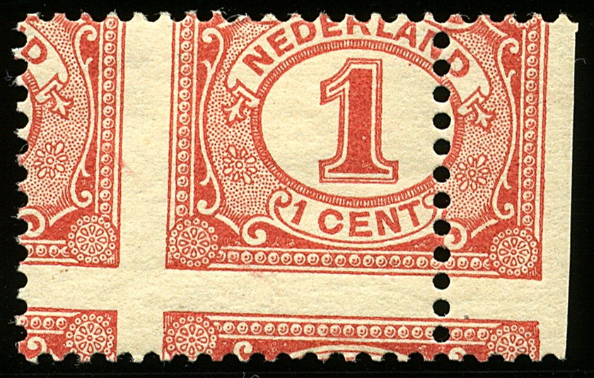 51, 1 cent Vürtheim met variëteit ´Sterk verschoven perforatie´, ongebruikt prachtex. Zie: HPN A8-259/280 en daaruit afb. 515
