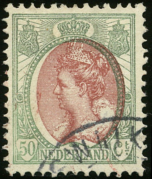 74f, 50 cent Bontkraag met variëteit ´Verschoven medaillon´, gebruikt prachtex. € 250