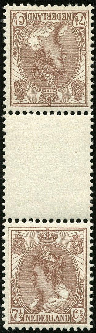 61b/c, 7½ cent Bontkraag als keerdruk met en zonder tussenstrook, postfrisse prachtex. € 1000