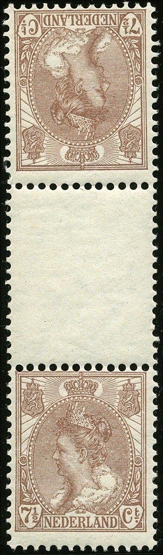 61c, 7½ cent keerdruk met witte tussenstrook, postfris prachtex. € 850