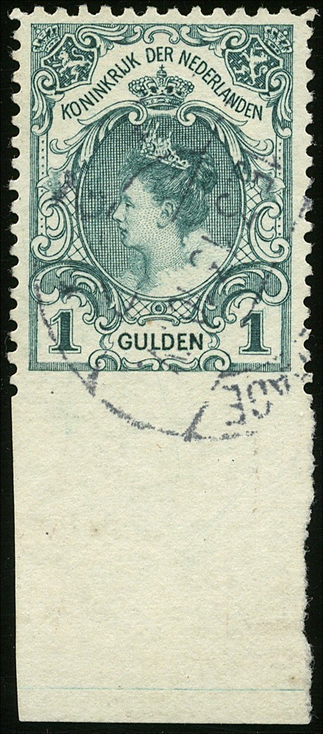 77Cv, 1 gulden Bontkraag met variëteit ´Onderzijde ongeperforeerd´, gebruikt prachtex. € 675