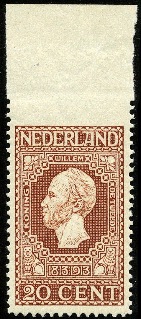 95Bv, 20 cent bruin, bovenzijde ongeperforeerd, postfris prachtex. € 2350+