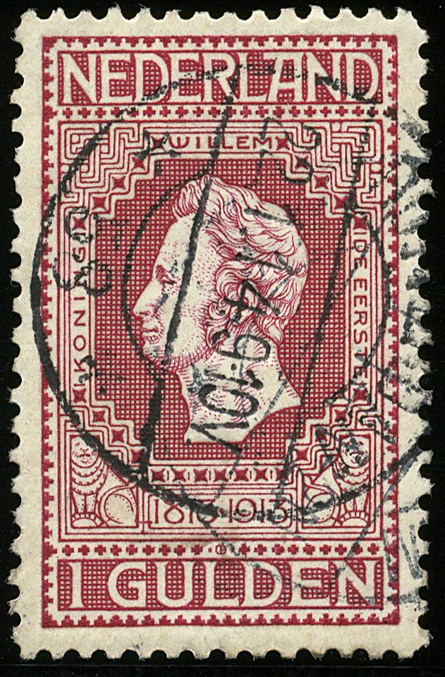 98P, 1 gulden Jubileum 1913 met plaatfout ´Horizontaal krasje links van 1813´, gebruikt prachtex. € 100