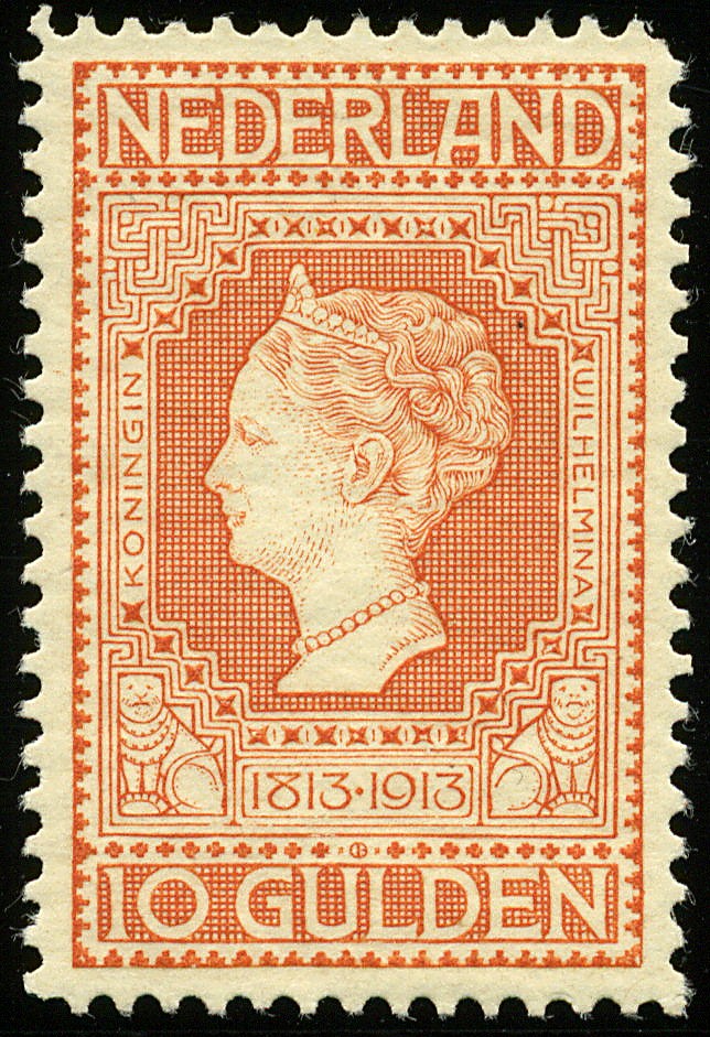 101, 10 Gulden roodoranje, postfris prachtex. met certificaat Sturms (1976) € 2250