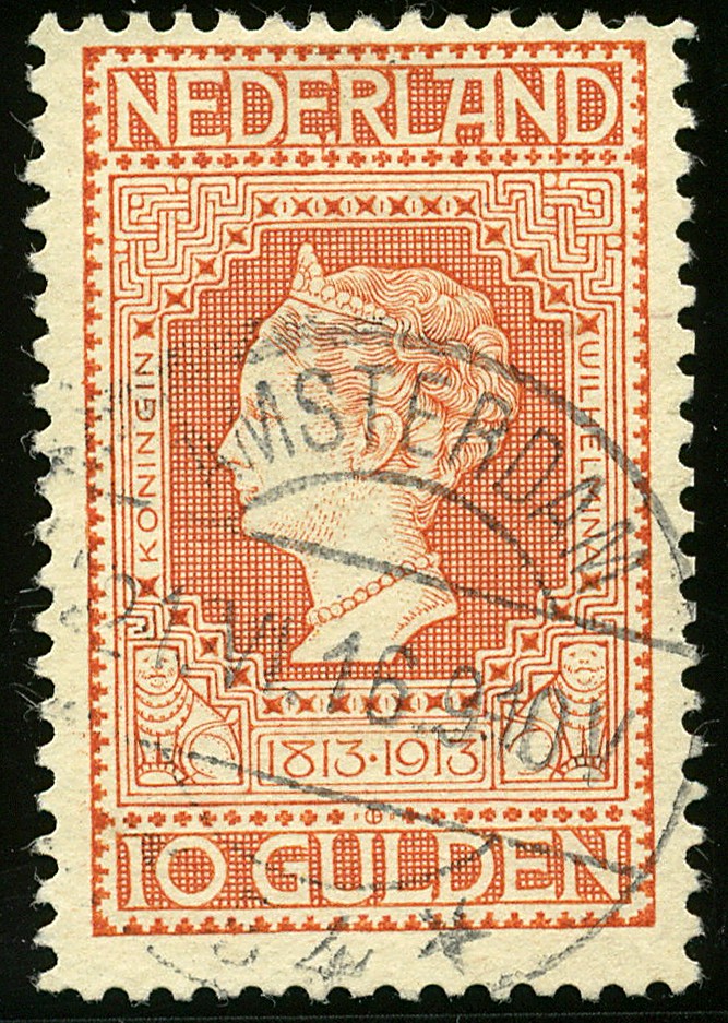 101P, 10 gulden roodoranje met plaatfout 'gebroken E', gebruikt prachtex. € 1100