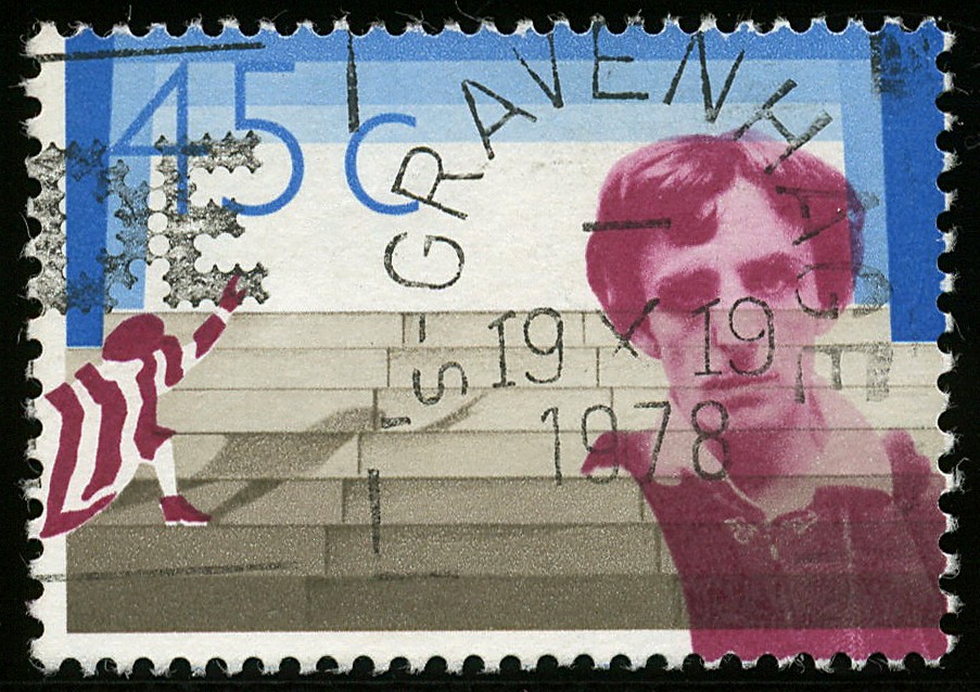 1166f, Verkade 1978 met foutdruk ´Zonder ¨Nederland¨´, gebruikt prachtex. afgest. ´s-Gravenhage 19-10-1978. Cert. ´Koopman, 1984´ met begeleidend briefje, en krantenartikeltje. € 1100