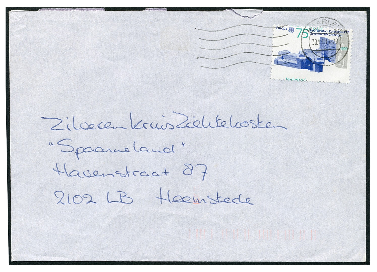 1452, 75 cent Europa 1990 met variëteit ´Verschoven horizontale perforatie´, prachtex. op iets ruw geopende envelop